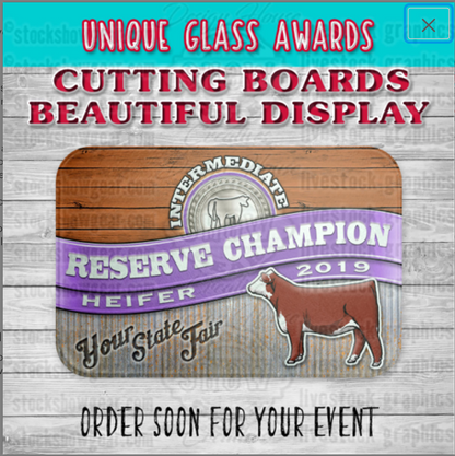 Cattle - Sheep - Poultry - Goats - Rabbits - Pigs....Champion and Reserve Champion Designs and more.