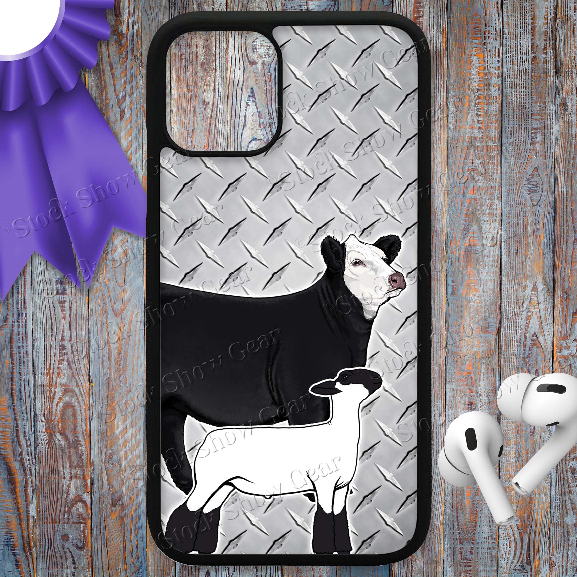 Black Baldy Heifer and Club Lamb Design Phone Cases with the option to change the background and personalize! We are showing it off on a couple of our popular backgrounds.