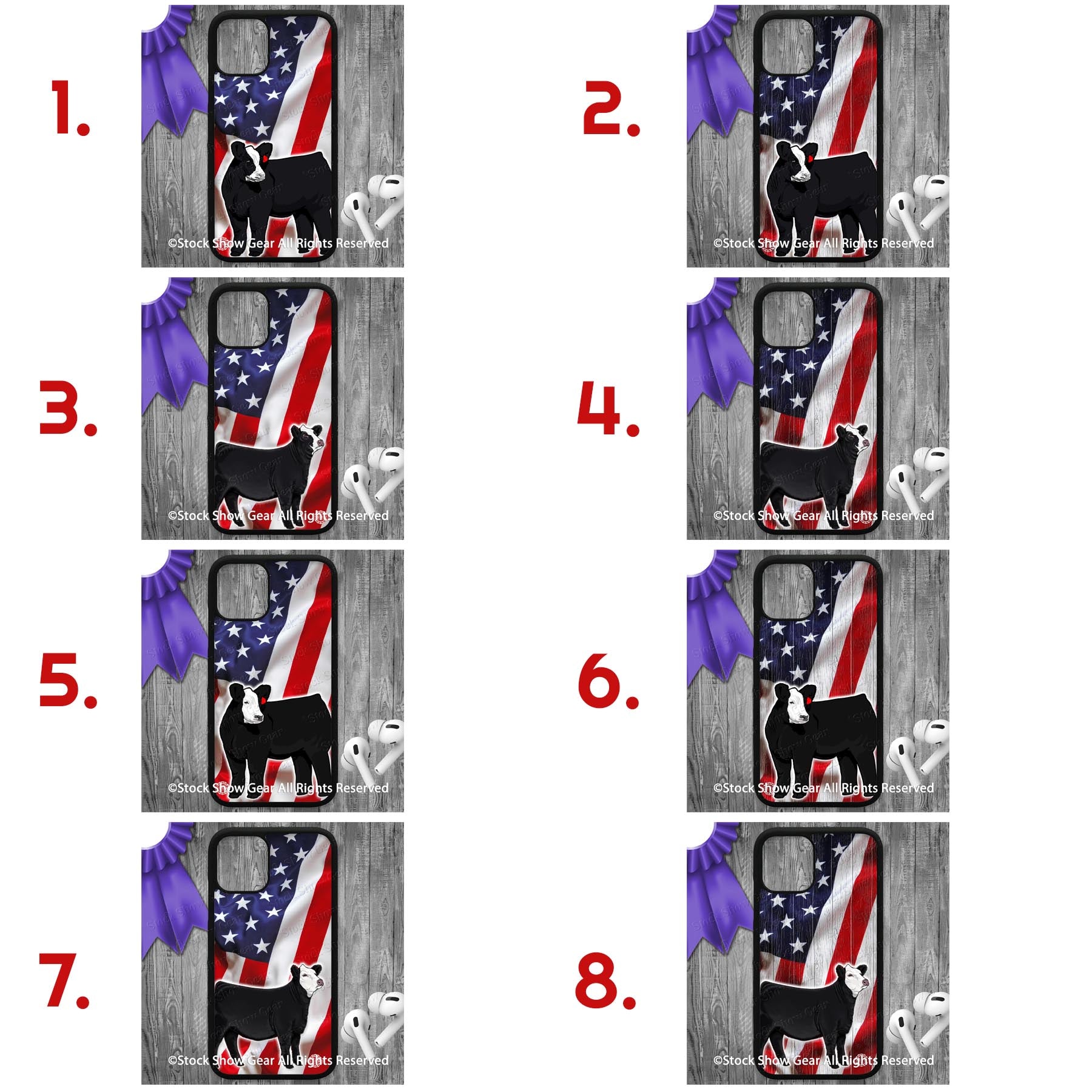 Shop lots of phone case options featuring our best Baldy heifers and choice of two USA Flag backgrounds - plain or wood. Add your name in a neon look for an additional cost. Read on...