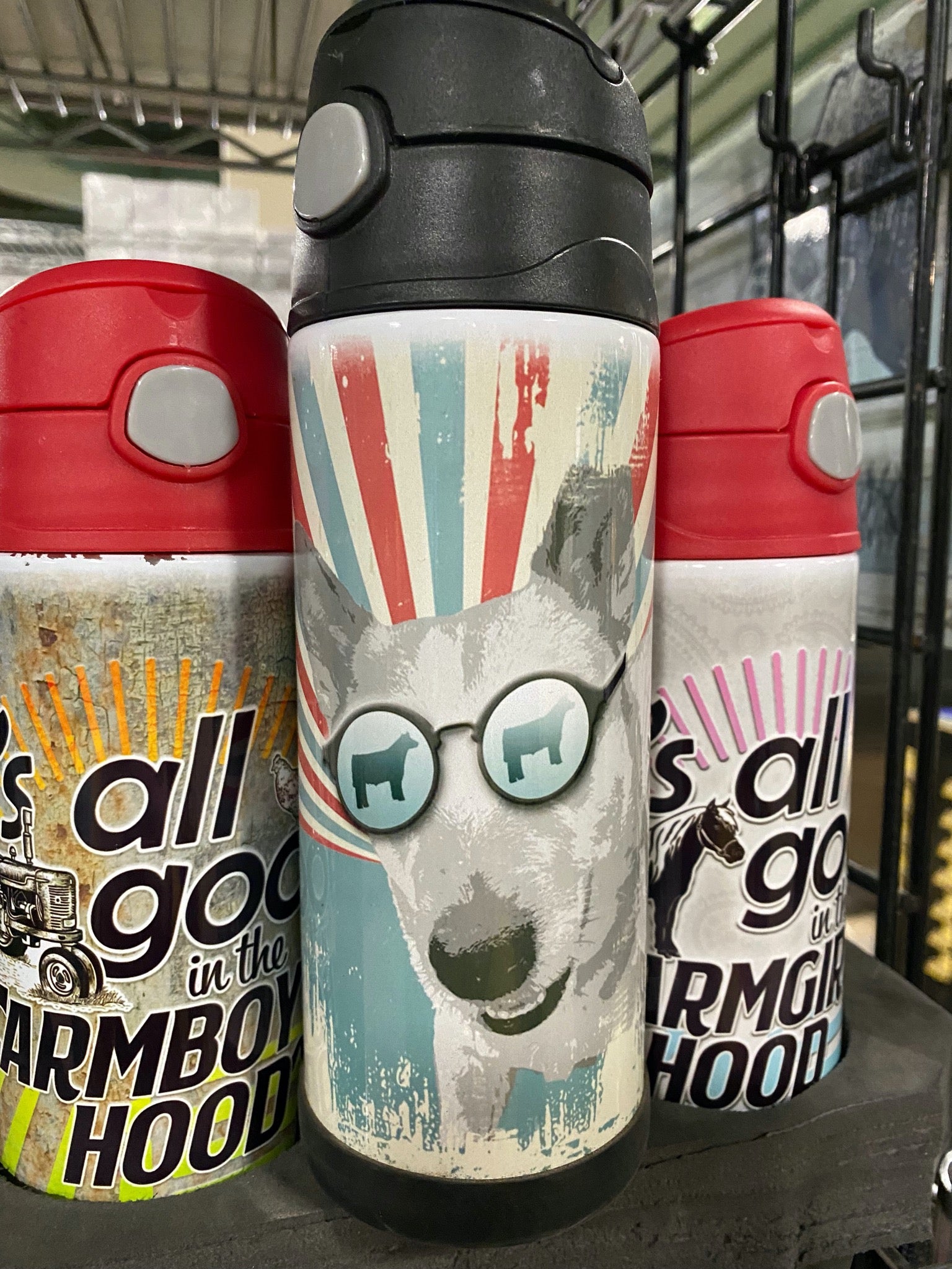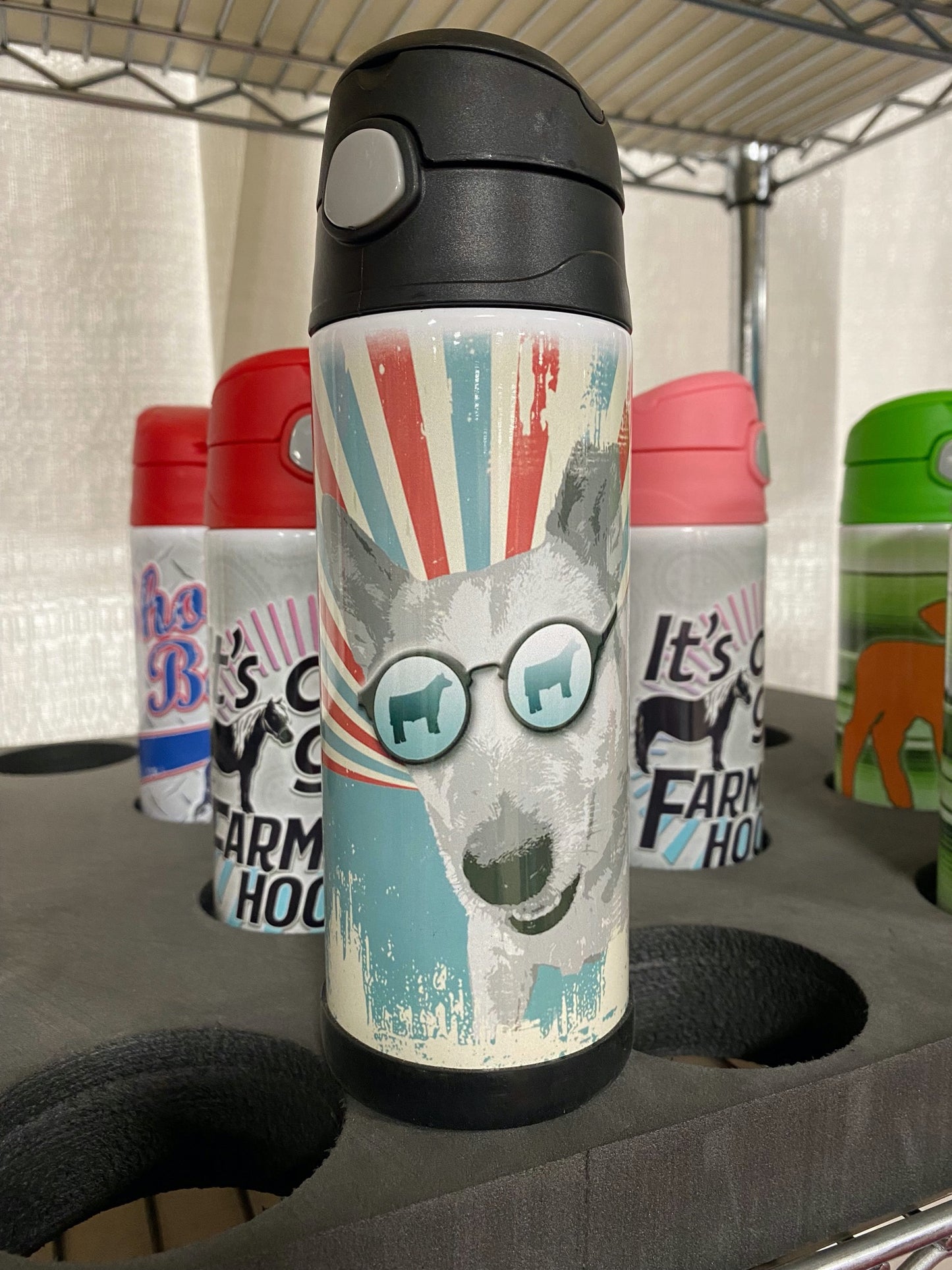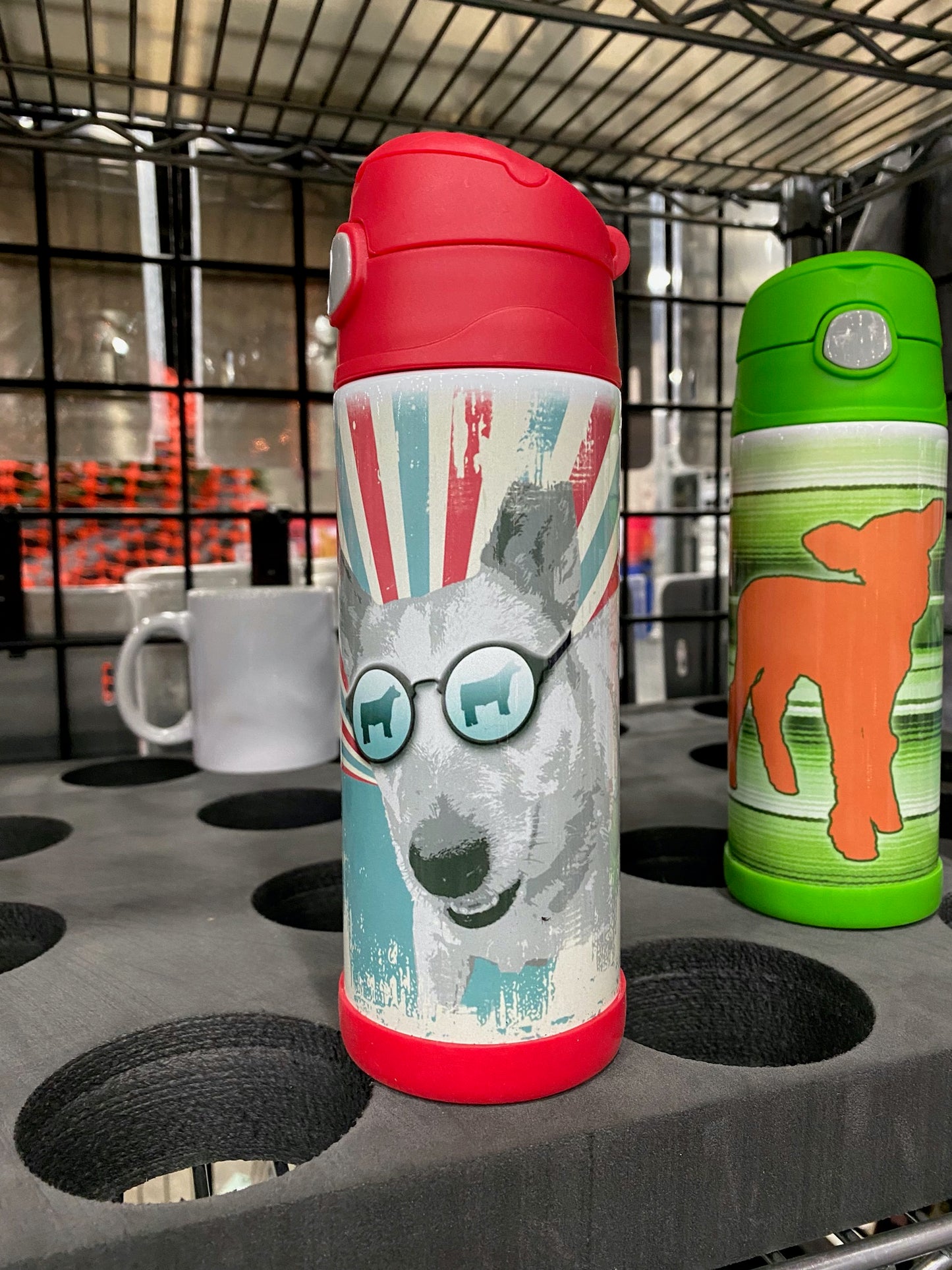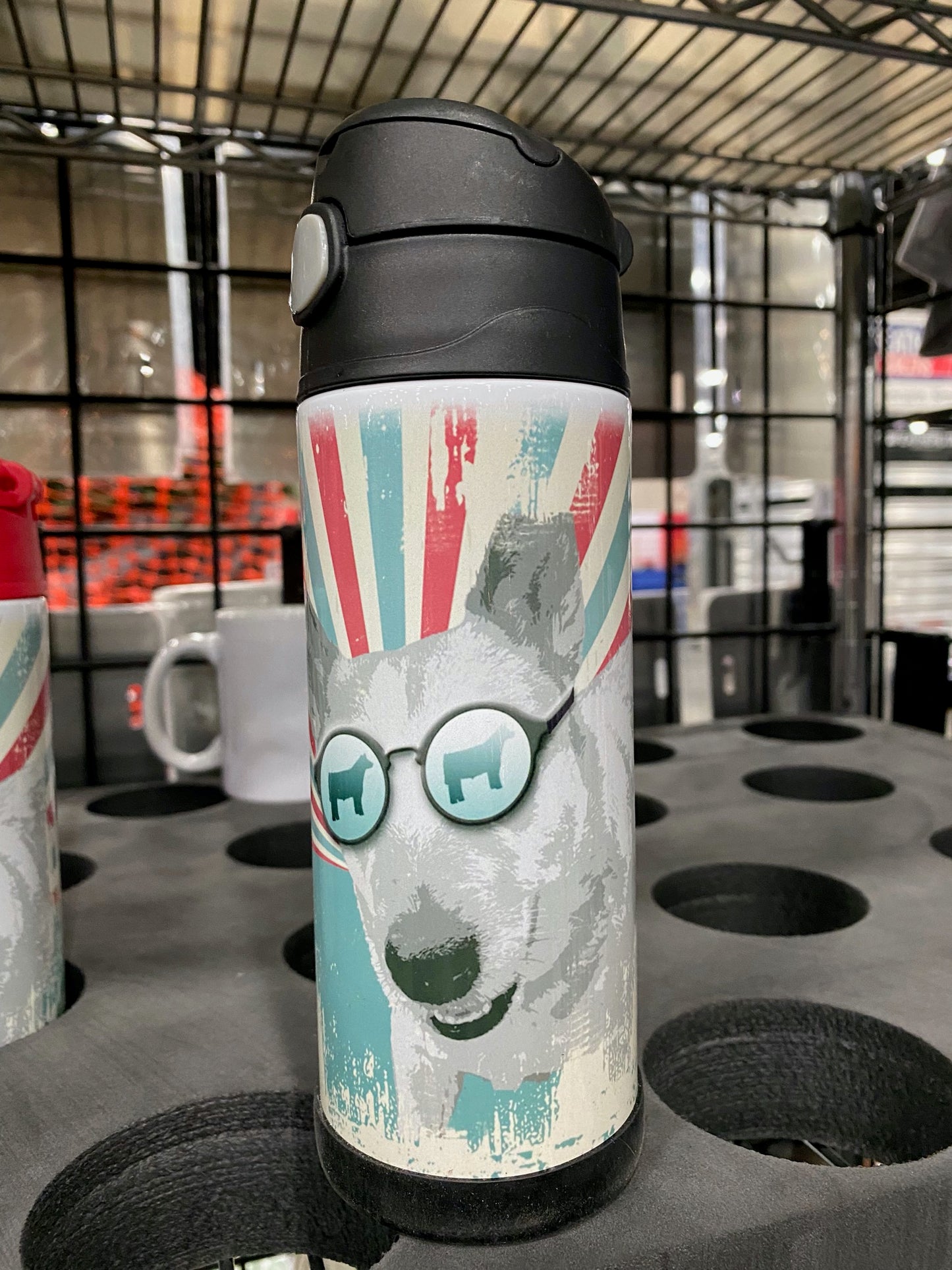 Cattle Dog in Sunglasses-Retro Starburst Design-12oz. Flip Top Tumbler. If there is just one, better scoop it up now as more may not be produced.