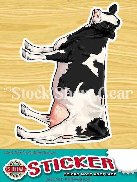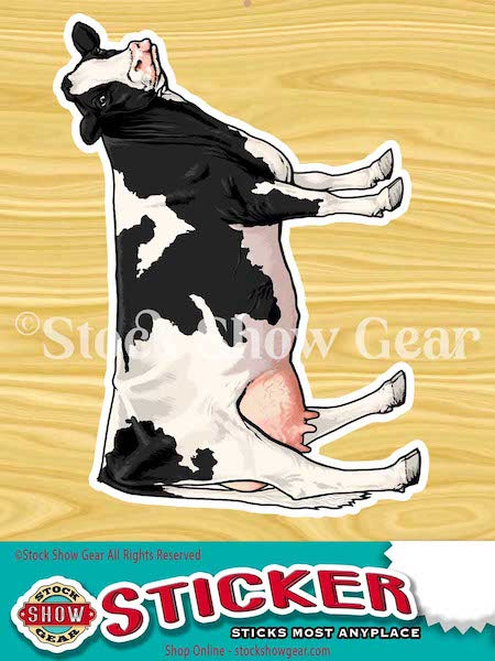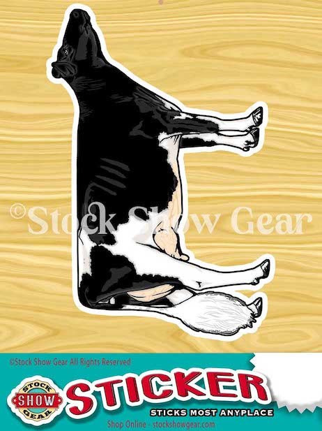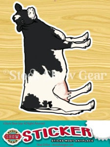 Stock Show Gear Black and White Holstein Dairy Cow Stickers make a thoughtful-inexpensive gift or the perfect item to add to your silent-auction baskets at events. Order some for your 4-H or FFA Showman to show your support for their hard work. Of course we have cute cow options for those that just love black and white cows!
