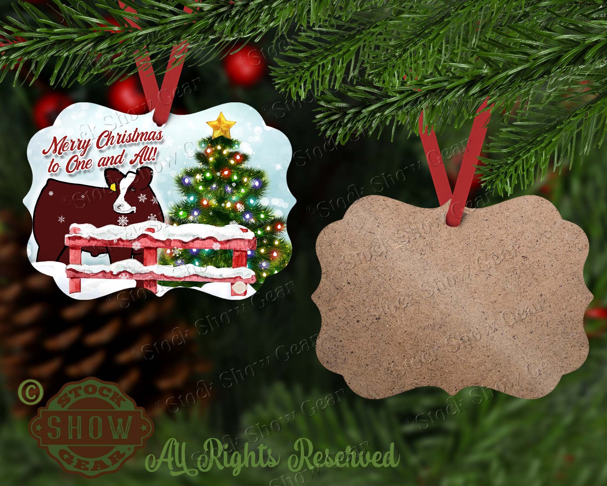 Red Baldy Steer Christmas Ornament