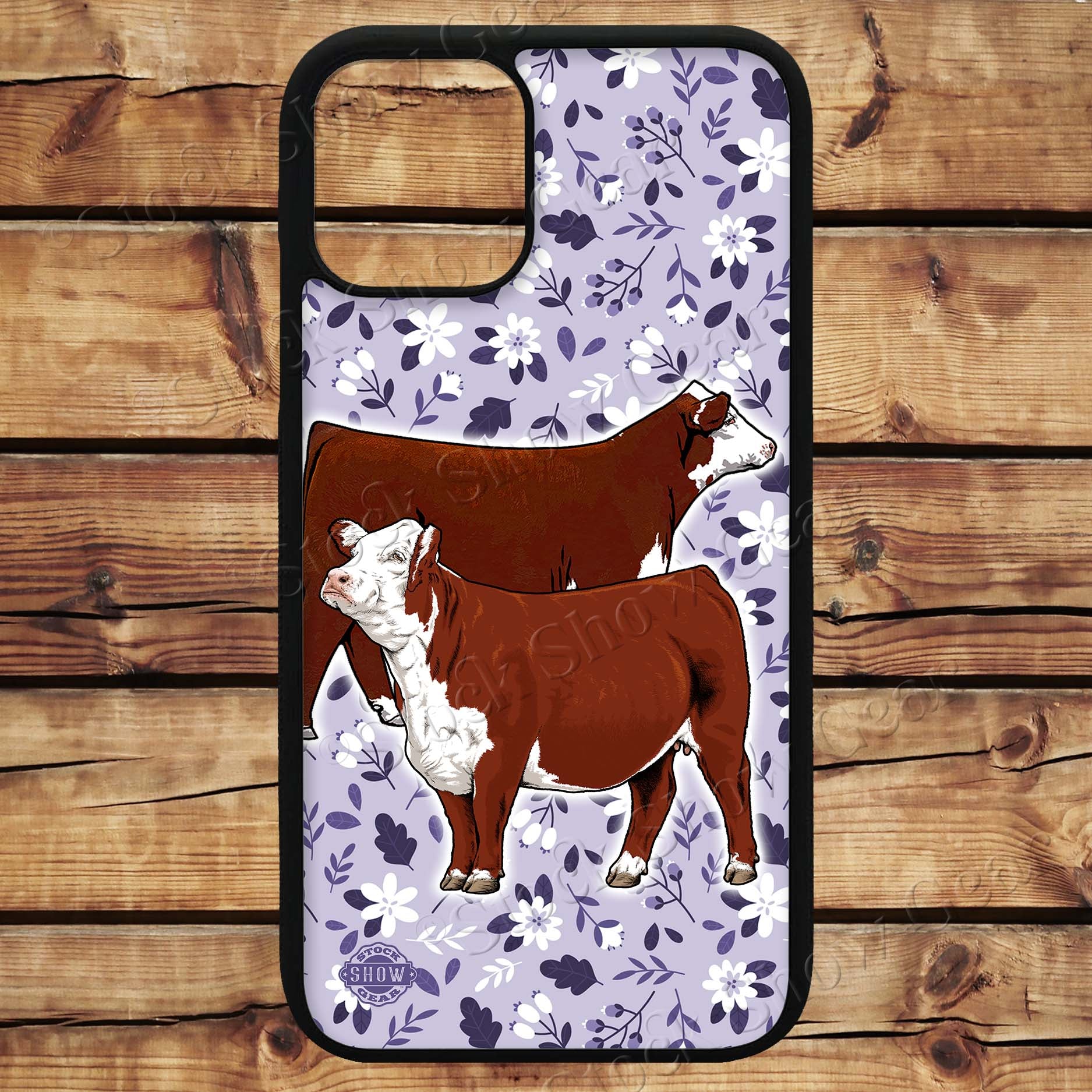 Choose our Hereford Cattle "Lavender Floral" Phone Case Designs featuring two versions of our best Red Hereford graphics and the option to personalize.