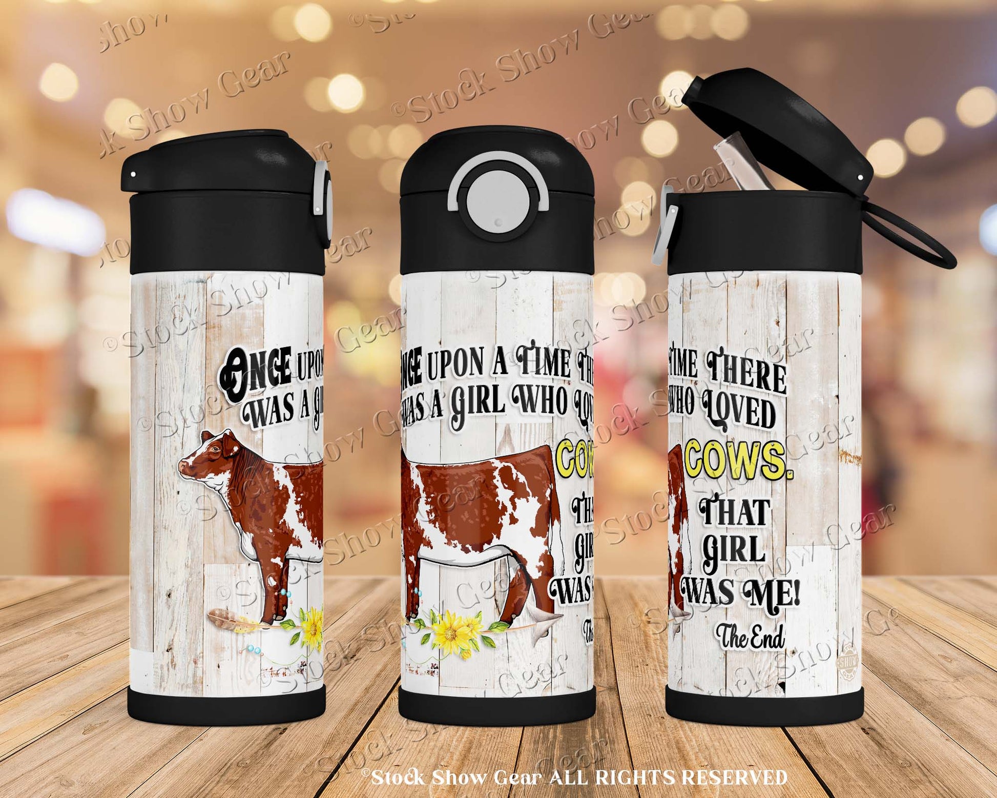Featured here is one of our Shorthorn "Storytime" 12oz Color Flip Top Water Bottles for the girl that just loves cows!