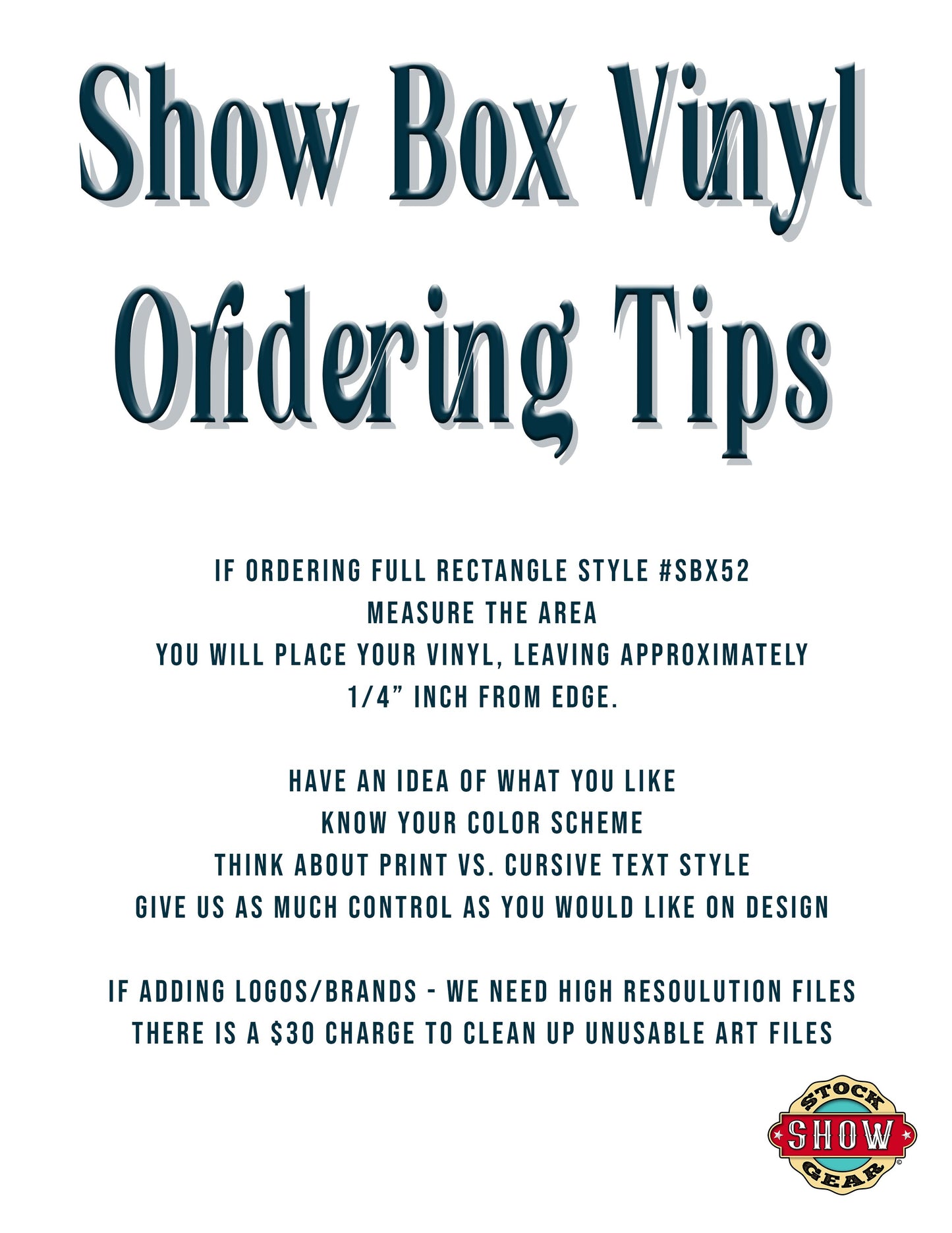 Stock Show Gear can help you dress up and personalize your show box or trailer with a custom design printed on high quality vinyl.
